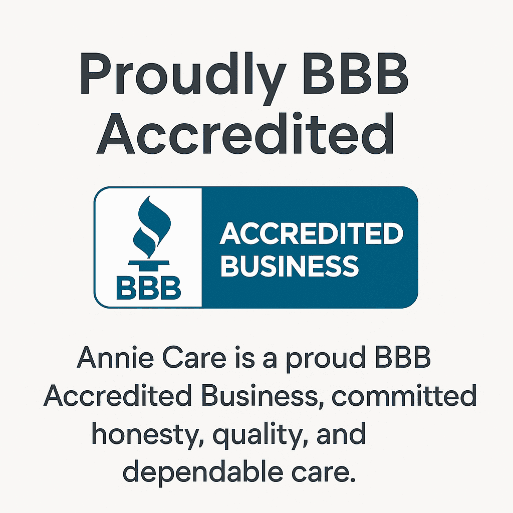 Annie Care is a proud BBB Accredited Business, committed to honesty, quality, and dependable care.